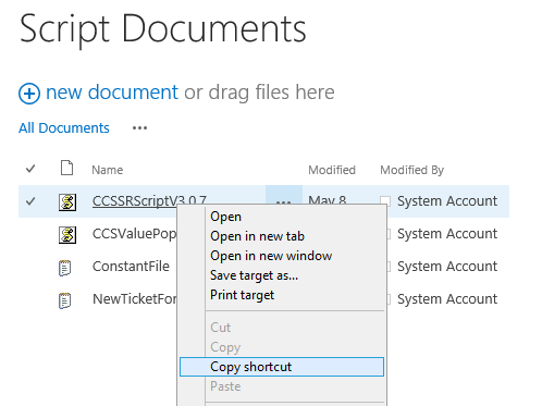 2. Copy Shortcut the CCSSRScript java script file. (Copy the Url of the the Java script file )