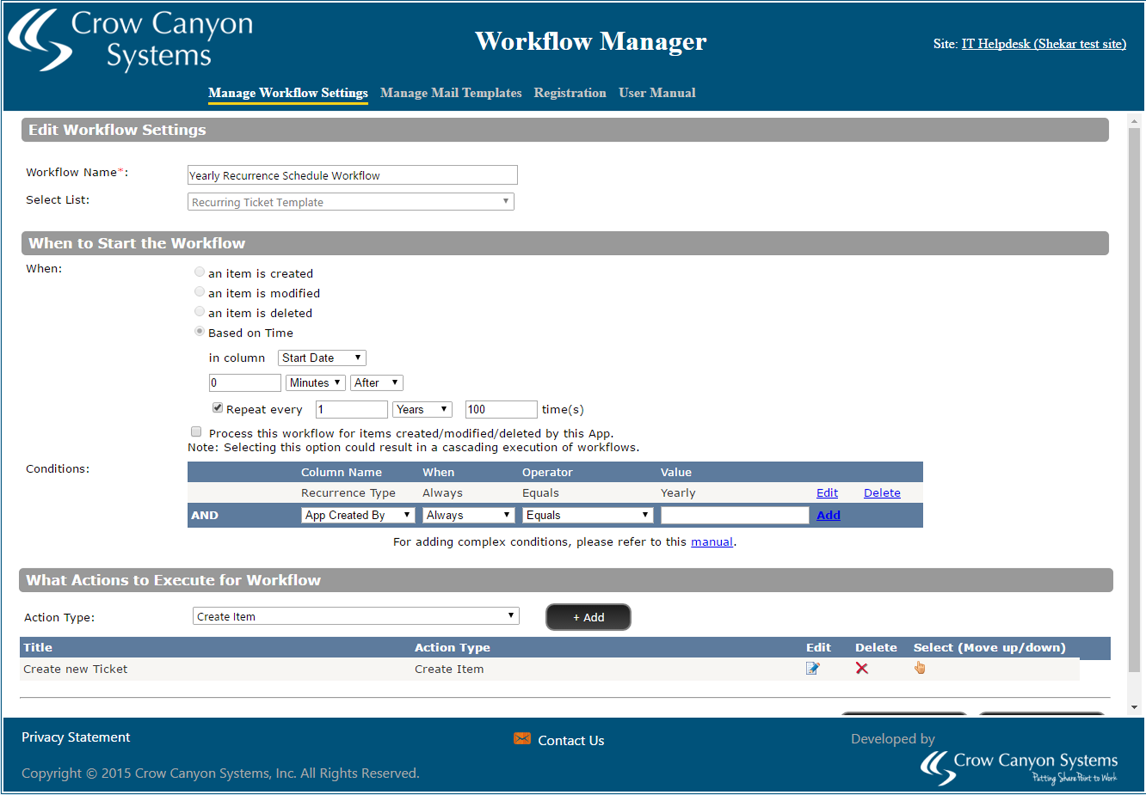 1. Create a new custom list "Recurring Ticket Template" in helpdesk site.