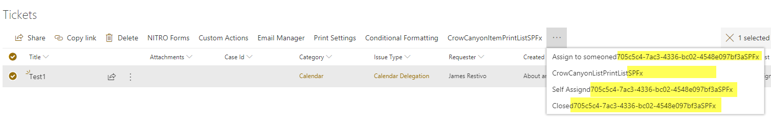 In SharePoint Modern list view web parts, ribbon shows long coded text for NITRO custom actions: