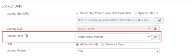 When using Lookup Columns in a NITRO Form, we were providing an option for searching values from the lookup list. This was using the standard SharePoint search feature which does not limit results. We have now enhanced the feature to refer to the view selected in the Lookup Data section to filter the search results: