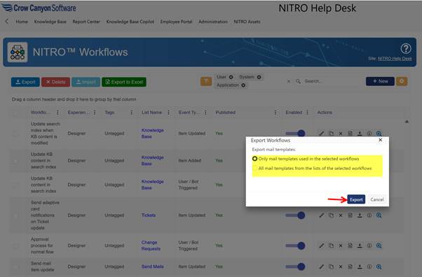 Update: While exporting workflows, added option to export all mail templates from the lists of the selected workflows.