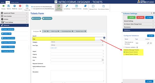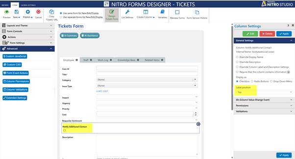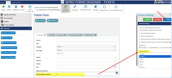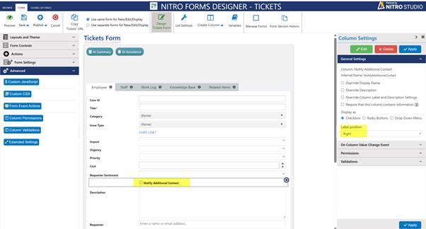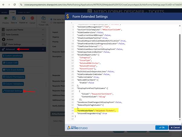 Navigate to NITRO forms of required list -> Advanced section in left panel -> Extended Settings