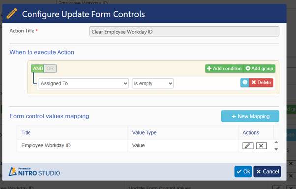 - A new enhancement has been added to the Create Item action in NITRO Workflows, allowing users to choose which NITRO Form should open for the created item.