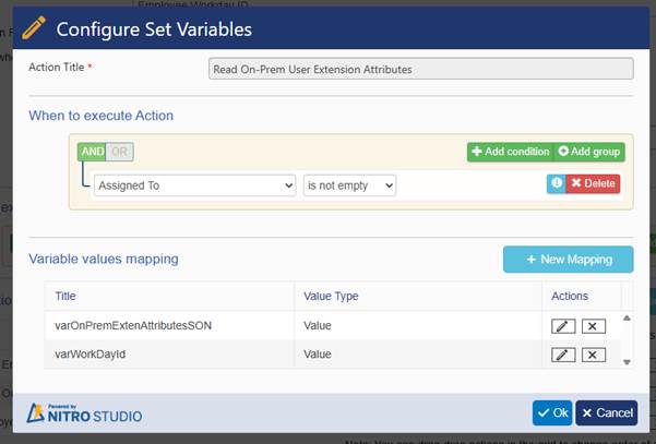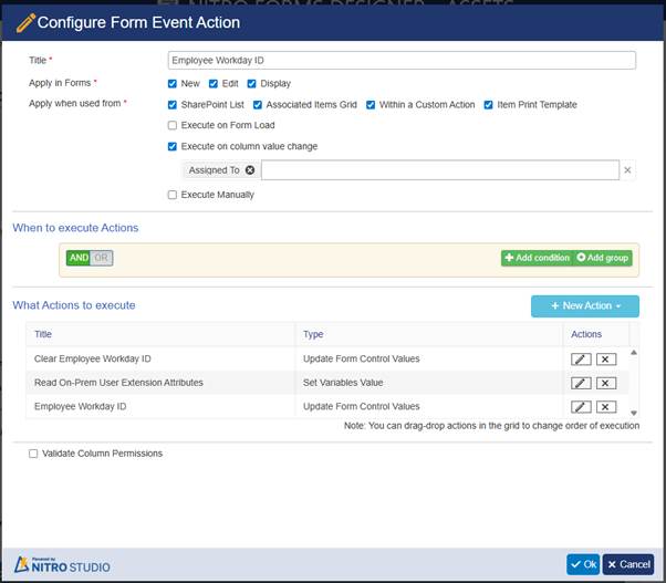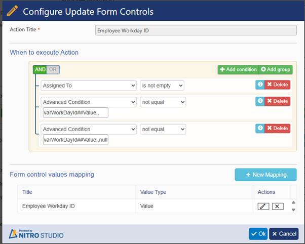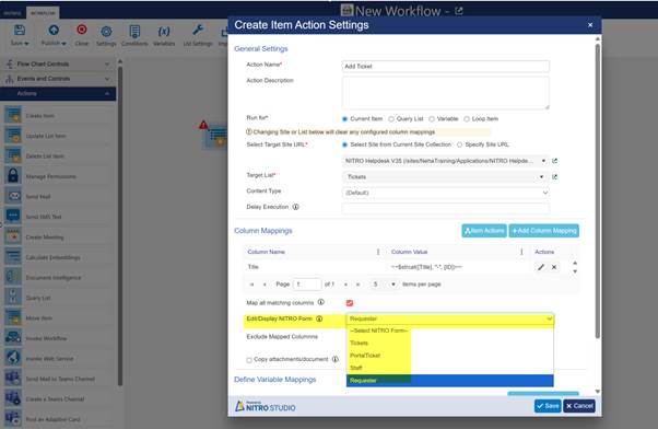 NITRO Workflows include an enhanced option in the Create/Update Item action that allows users to automatically map column values between lists.