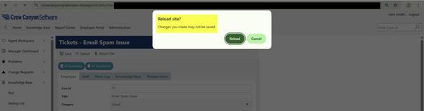 After making changes in NITRO form, if user clicks on reload button then warning message will be displayed.