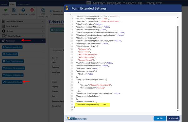 A new advanced option called UnsavedChangesWarning has been added to NITRO Forms.