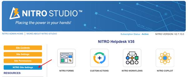 Go to NITRO Studio page -> NITO Site Settings in left side