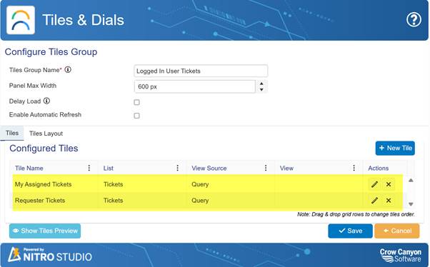 Manage Tiles now supports {LoggedInUserName} and {LoggedInUserEmail} in the view query