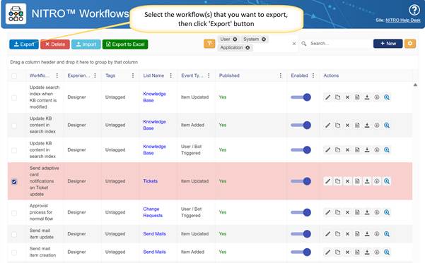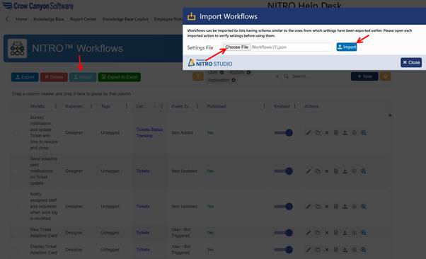 Go to NITRO workflows Homepage – Click ‘Import’ button available in the workflow ribbon