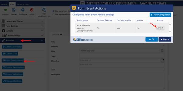 Go to NITRO forms of required list -> Advanced section in left panel -> Form Event Actions