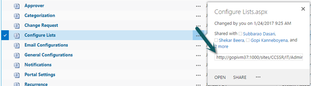 · 1. Go to site contents of the site, "Administration" document library , copy the url of "Configure Lists" page.
