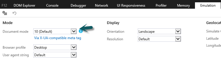 Edit CCSPortal.master page with notepad and change the IE mode to right value (10/11/Edge) that is found earlier in F12 tool and save the file.