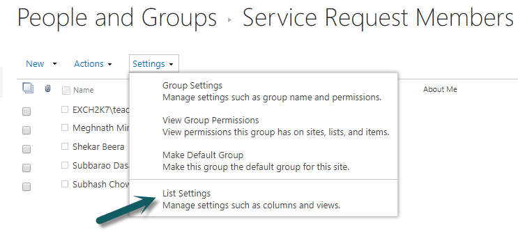Go to Site Settings in root site –> People and groups (in Users and Permissions section) –> Click on List settings under Setings (refer below image)