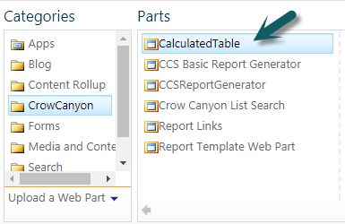 Edit the webpart page –> Add a Webpart –> Add Calculated webpart from "CrowCanyon" folder to the page.