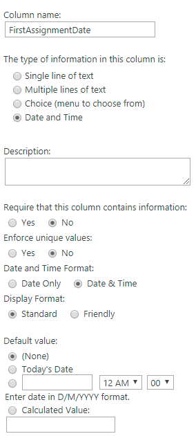1. Create a column “FirstAssignmentDate” (Date-Time type) in Tickets list to capture the first assignment time.