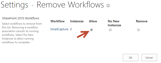 - If the item is created in Email Tickets list for an email but Ticket doesn’t gets created in Tickets list then check whether the Email Capture workflow instance is in allowed state or not in Email Tickets list.