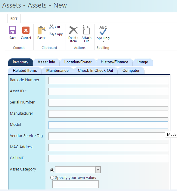 Screenshot 1: Sample Asset Form before NITRO upgrade