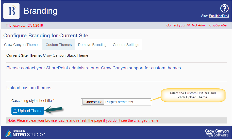 - For more details, please refer Branding App at https://www.crowcanyon.info/nitro/appmanual_v2/.
