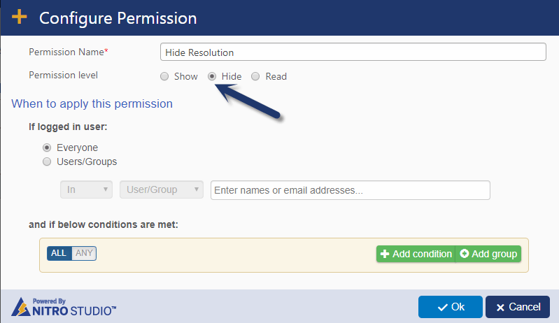 - First permission hides the “Resolution Notes” column without checking any conditions