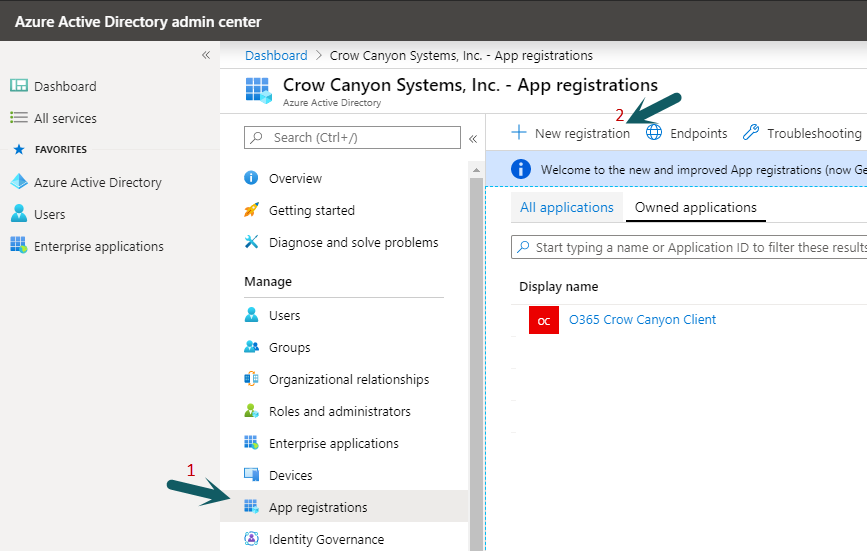 Go to Admin Centre -> Azure Active Directory -> App Registrations -> New registration