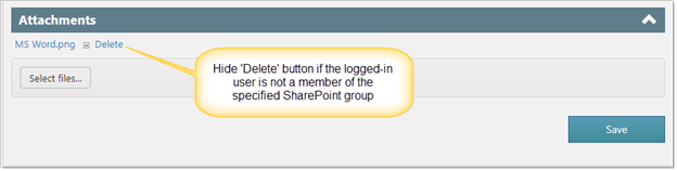 - Identify the SharePoint groups that will have permissions to delete attachments. For all other users delete button will be hidden.