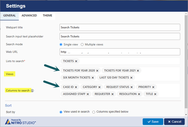 Here, views are based on a date column such as the created date. This column should be indexed for views to work. To search Tickets from these views, configure NITRO List Search for Tickets list and select these views in list search settings. For more details on list search component, refer this article.