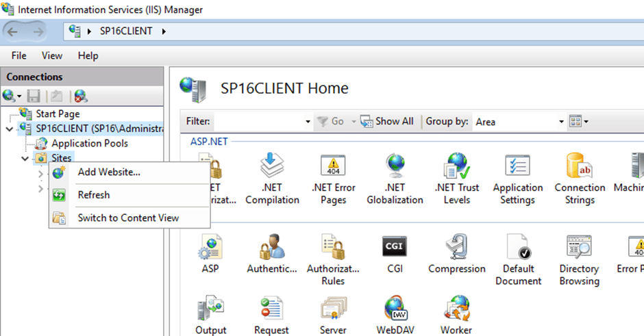 Add Website as shown below, browse the physical path below that is used for #3 above.