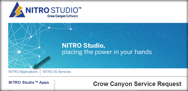 Step 1: Navigate to root site of the site collection -> Crow Canyon NITRO Studio app -> click on NITRO Applications as shown below:
