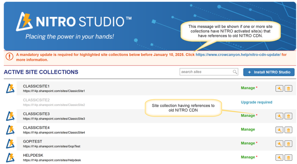 Next update NITRO Studio for all the sites with in the site collections. You can update NITRO Studio in below ways:
