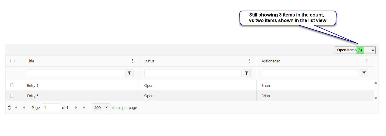 Quote from Brian on December 31, 2025, 9:34 amWe have a ListView on one of our sites where the ListView "Show View Items Count" would be very useful, however because we are filtering the results shown using the Advanced Settings / Javascript / scriptManager.IsItemVisible to filter out entries based on permissions (which is working). The count in the drop down list is the original view results count, and not the filtered results shown. Is there any way to either update the count or have it reflect the count of rows visible?