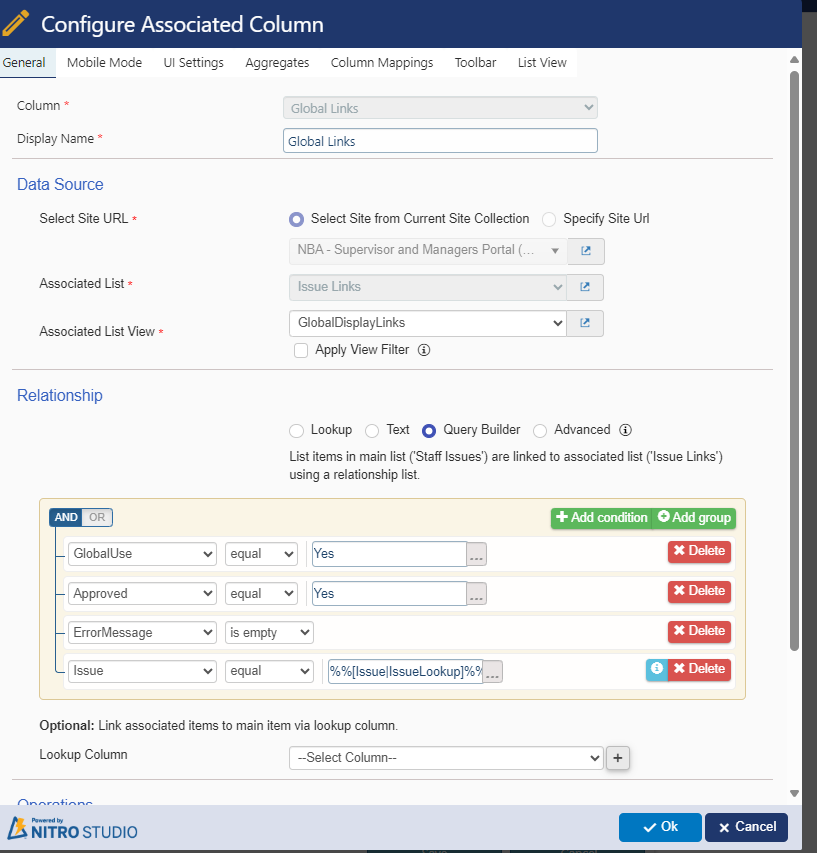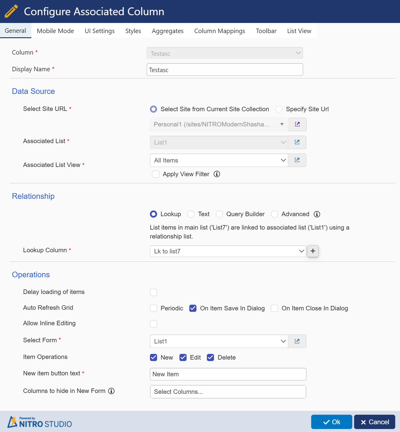 Could you please share the screenshot of the associated item column settings, we will check it and get back to you.